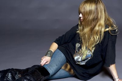 This is one of my favorite photos of Patti Smith. It was taken when she performed in the play "Cowboy Mouth." Perhaps it's a bit difficult to tell but upon close inspection I noticed that she used fabric scraps to patch up the holes in her jeans. Kurt cobain who was known for his threadbare and torn clothing wore jeans like this as well. Having holes in your clothes must not pleasant in the winter so I assume he got resourceful (or maybe Courtney did). I've been trying to be more resourceful myself. I haven't bought clothes in two months, which has required strength, but I haven't regretted my decisions. I'm attracted to garments similar to ones I've already got. During the closing months of last year I'd purchased new clothes that I could most certainly rock and returned them because I didn't feel that I needed them. I of course accept gifts but when it comes to purchasing things myself I feel that my music addiction has become more important.A few years ago I actually ripped up a pair of jeans out of boredom (this can be a bad, bad idea) and haven't worn them since. I think I'll give the patched look a try.