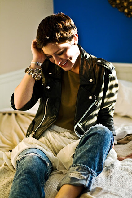 Karla's Closet has become one of my favorite blogs. Here eye for interesting jewelry, and her love for her curves and perfect broken in jeans is admirable. This outfit above is my favorite one from the blog. The feminie skirt is offset by her amazing Levi's and biker jacket perfectly. I might attempt this with my similar pewter colored skirt. Be sure to check her out.